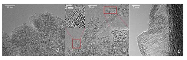Three types of activated carbon were selected, representing three different pore geometries while retaining chemically uniform adsorption surfaces and comparable pore sizes. The selected samples are activated carbon composed of randomly arranged graphite layers, titanium carbide derived activated carbon with slit pore geometry, and activated carbon nanotube samples with cylindrical pore geometry. Heat treat activated carbon nanotubes to remove end caps and allow gas to enter the internal pores. Select heating conditions to adjust the porosity and BET surface area of activated carbon nanotubes to a level comparable to the other two carbon samples, while also cleaning the surface and removing impurities. The characteristics of all three samples are as follows: the differences in pore geometry of these materials were demonstrated using transmission electron microscopy (TEM) Figure 1.
